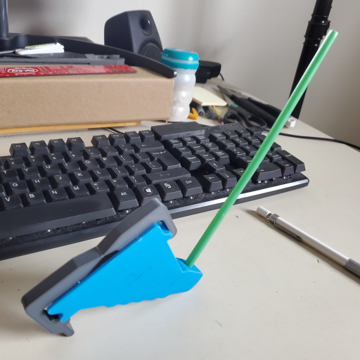 My music stand has always been cluttered with various objects, and it makes organizing my music excessively difficult without at least a pencil falling off. To fix this, I decided to make an extension to my stand that hangs off one side to increase the space I have. The extension consists of a clip that mounts to the stand and a shelf below and the design is a single 3D printable piece. The completed module is able to hold a metronome and a few pencils. It is pictured below with my personalized conductor's baton.