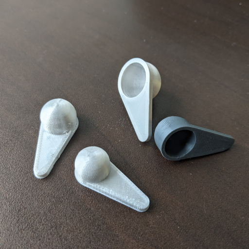 Later, this project would discover an alternative use as well. I needed a way to suspend a 3d printed moon from the ceiling as part of my moon rocket diorama for the hydraulic arm. Instead of creating a new system from scratch, I recycled the curtain rod and flipped it upside-down to act like a pulley instead. The pulleys let me raise and lower the height of the moon easily. Then, I printed a mount to stick it onto the ceiling which rotated so I could adjust the position of the moon. The segments also received some strengthening sleeves to keep them from breaking.