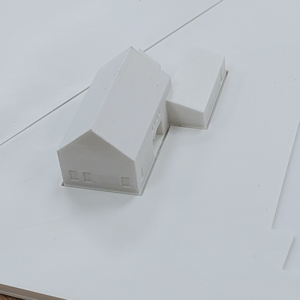 The first issue I needed to address was how large to make the replica. It needed to be as large as possible, but both the house and the property it sits on had to be within the capabilities of my 3D printer. The best balance I found was at 1:100, printing the property in two pieces which would then be joined together. Using the architectural drawings provided to me, I carefully modeled a scale replica of the building using the given dimensions. For the property, I used a plat map to create a model to the same scale as the barn. After these were printed, I handed the completed project to the engineering teacher who delivered it to the Historical Society.