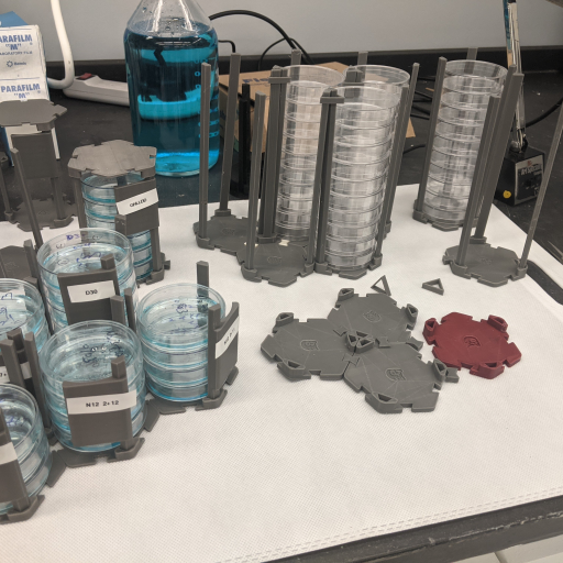 Petri dishes are probably the most used consumable in labs. They are sold in sleeves without a fitted container or holder. Commercial petri dish organizers are available, but overpriced. I designed a modularized petri dish organizer set that can be freely assembled and disassembled based on needs and for multiple purposes.