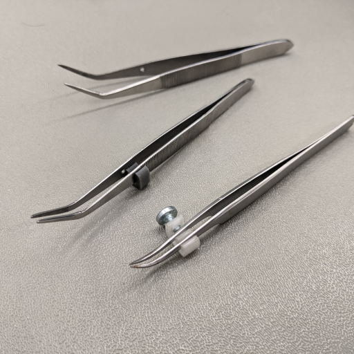 I designed this adaptor with the goal of shortening the range for tweezer tips to meet. Limiting the tweezer tips' range of movement allows finer control when using tweezers, which is especially useful for handling fragile specimens. A screw is integrated for adjusting the extent of the limitation.